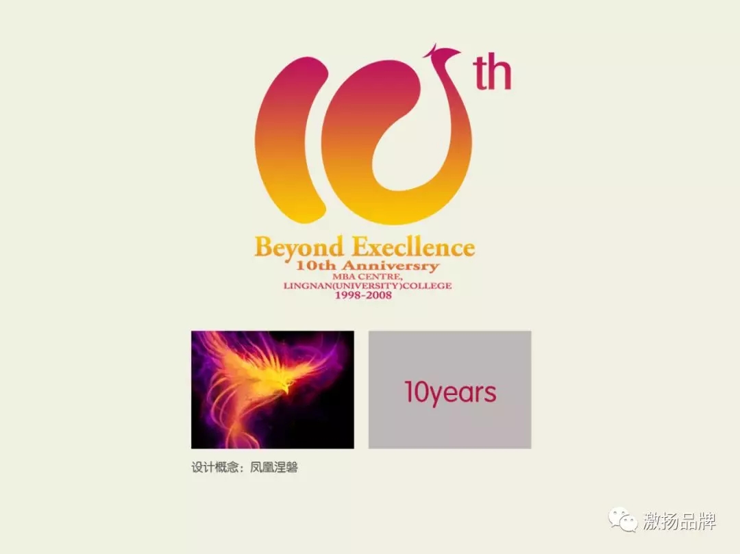 以凤凰为主要的视觉造型,以柔滑的线条勾勒出数字10,象征MBA中心成立10周年,
